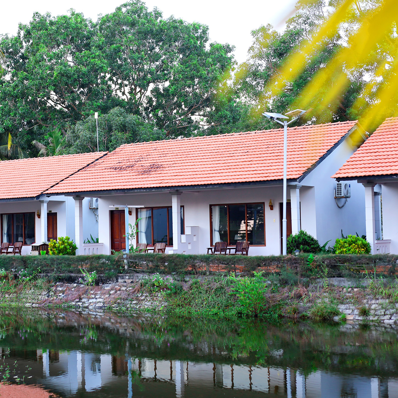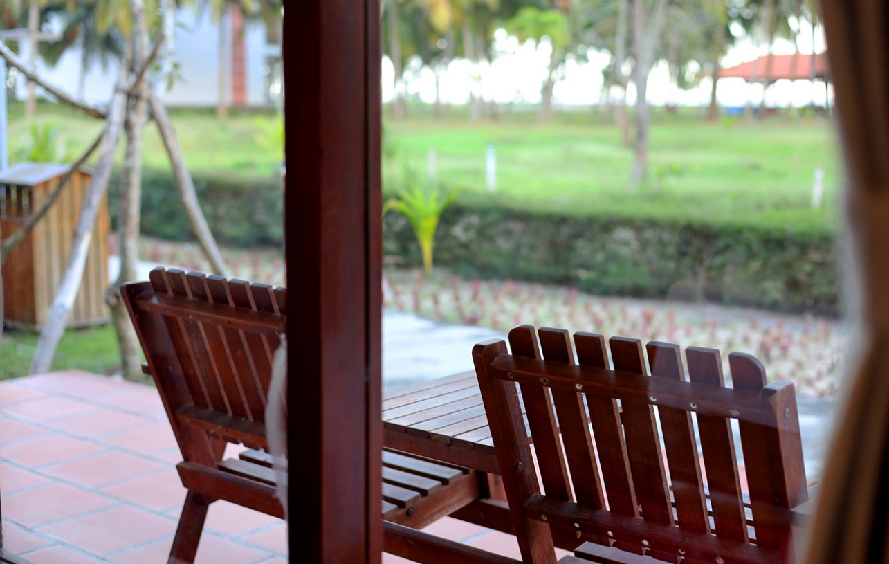 Với lối kiến trúc mộc mạc nhưng không kém phần sang trọng, cách trang trí hài hòa với khung cảnh thiên nhiên. Tất cả Bungalow được thiết kế với hành lang riêng biệt hướng ra dòng suối tự nhiên, đầy thơ mộng là nơi du khách có thể hòa mình vào bầu không khí trong lành với làn nước xanh biếc phản chiếu dưới những bóng dừa xanh ngát tạo nên một cảm giác không thể nào quên về một khu nghỉ dưỡng yên bình mà không tách biệt với thiên nhiên.