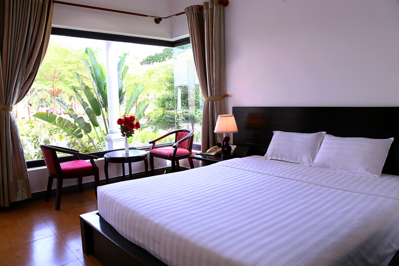 Kiến trúc thiết kế kiểu hình chữ U mang đến một cảm giác thoáng mát và ấm áp về một nơi nghỉ dưỡng sát bờ biển. Các phòng được thiết kế liền kề hành lang chung hướng ra vườn hoặc nhìn xa ra biển, thích hợp cho các cho các công ty tổ chức đoàn hoặc các gia đình muốn ở gần nhau.
